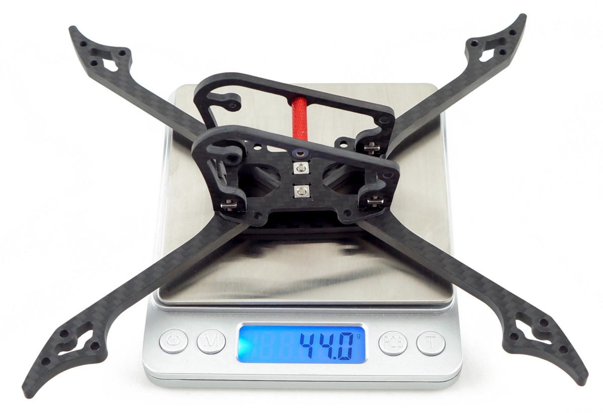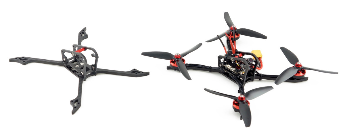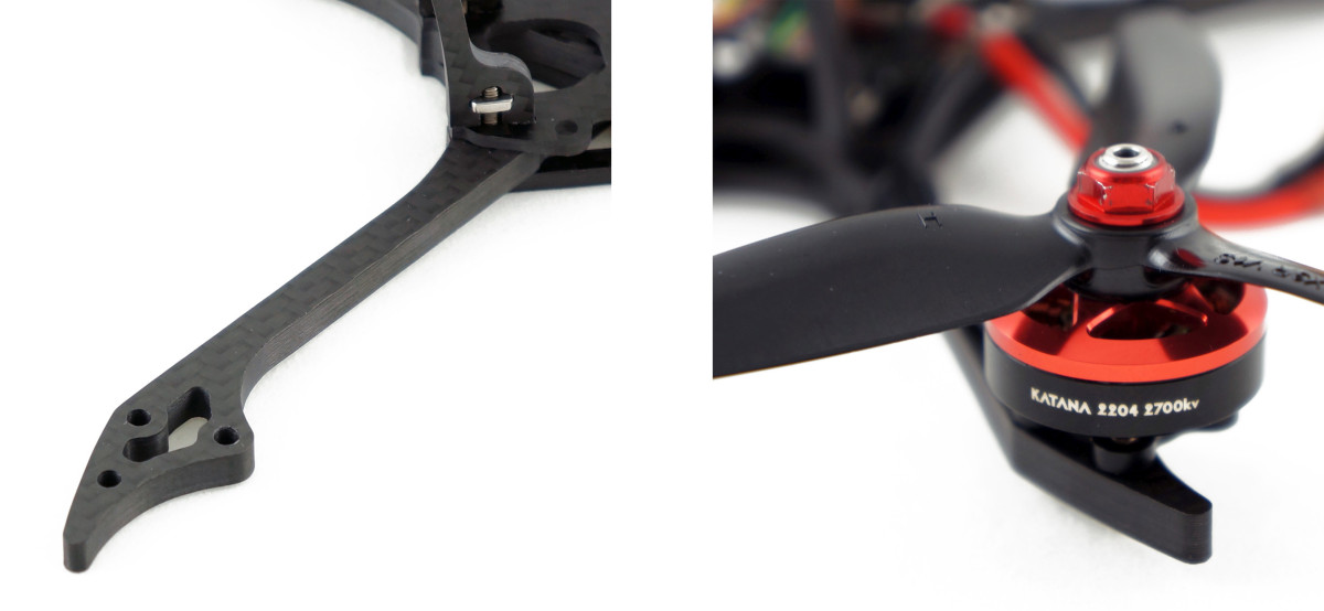 Die Arme sind trennbar und leicht austauschbar. Wenn ein Arm bei einem wirklich harten Aufprall bricht, genügt es, zwei Schrauben zu lösen und der Arm kann frei herausgezogen und durch einen anderen ersetzt werden. Sie können in wenigen Minuten wieder in der Luft sein. Die Arme sind auch sehr schmal und machen den Rahmen sehr aerodynamisch. Um den vollen Vorteil der schmalen Arme zu erzielen empfehlen wir die Verwendung eines 4in1 ESC. Reguläre ESC kann man bei Bedarf immer noch an den Armen befestigt.
