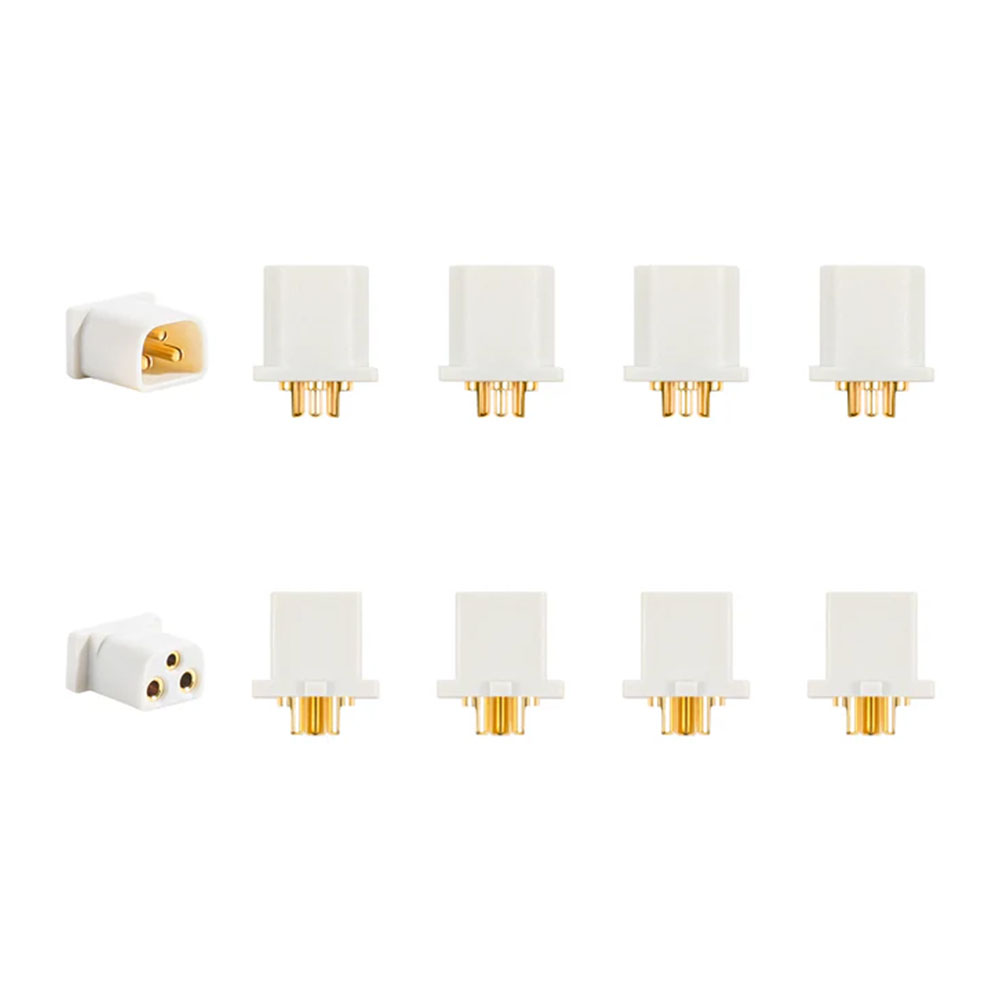 Set von BetaFPV BT3.0 Anschlüssen. BT3.0 Anschlüsse sind speziell für 2S Akkus in kleinen FPV-Drohnen konzipiert. Sie verwenden eine drei-polige Lösung, die die Stromkontakte für das Entladen kombiniert und ein ausgeglichenes Laden ermöglicht, ohne dass ein separater Balancer-Anschluss erforderlich ist. Dies vereinfacht den Bau und die Nutzung von 2S Akkus.