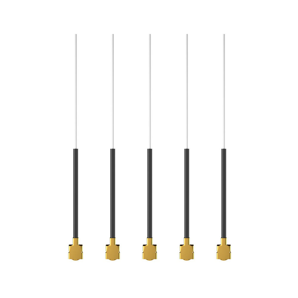 Set von 5 leichten Antennen für die Frequenz 2.4 GHz mit IPEX1 Anschluss. Die Antennen sind für die Verwendung mit ELRS-Empfängern geeignet. Mit einer Gesamtlänge von 58mm und einem Gewicht von nur 0.16 Gramm sind sie besonders ideal für Tinywhoops und andere kleine Drohnen, bei denen das Gewicht entscheidend ist oder kein Platz für eine konventionelle Immortal T-Antenne ist.