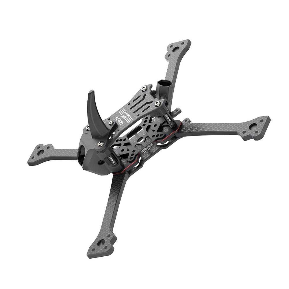 GEPRC Racer ist ein Rahmen, der zum Bau eines 5" Renn-FPV-Drones entwickelt wurde. Er ist für hohe Festigkeit und geringes Gewicht konzipiert. Der Rahmen verfügt über langlebige Arme mit einer Dicke von 5 mm, hergestellt aus T700-Kohlefaser. Die Mittelplatte ist aus 7075 Aluminiumlegierung gefräst. Unter den Reglern befindet sich ein Platz von 14×27 mm für die Platzierung des RC-Empfängers. Der Rahmen enthält 3D-gedruckte Zubehörteile wie eine Kamerahalterung für Nano-Größe, eine Antennenhalterung und eine Finne für eine einfache Rotation.