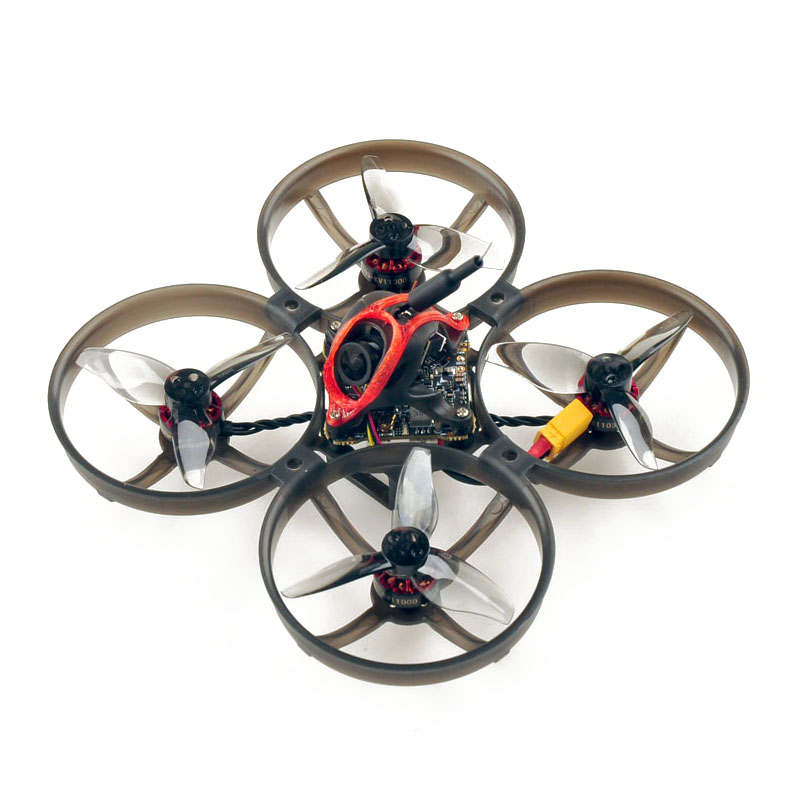 Das Herzstück des Copters ist die Happymodel X14-Platine, die einen Flugcontroller mit G473-Prozessor und ICM42688P-Gyroskop, 16 MB Blackbox-Speicher, 12A Bluejay-ESCs, einen UART-ELRS-Empfänger sowie einen analogen Videosender mit einer Leistung von bis zu 400 mW kombiniert. Für den Antrieb sorgen 1103 11000KV-Motoren in Kombination mit Gemfan 2023-3-Propellern. Der empfohlene Akku ist ein 2S LiPo mit einer Kapazität von 450–550 mAh und Abmessungen von 13×17 mm.