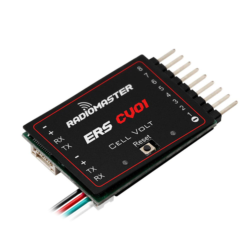 RadioMaster ERS-CV01 ist ein kompakter Zellen-Spannungssensor, der für ExpressLRS-Empfänger entwickelt wurde. Er ist hauptsächlich für PWM ELRS-Empfänger gedacht, die in pilotlosen Flugzeugmodellen verwendet werden. Der Sensor wird über eine UART-Schnittstelle angeschlossen und kommuniziert über das CRSF-Protokoll. Er ist kompatibel mit Radiomaster ER6, ER8, ER8G und ER8GV Empfängern sowie anderen ELRS-Empfängern mit einem verfügbaren UART-Port. Dank des UART-Eingangs und -Ausgangs können mehrere Sensoren miteinander verbunden werden.