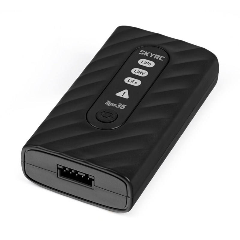 SkyRC Type35 ist ein kompaktes Taschenladegerät, das für das Laden von 2-4S LiPo, LiHV und LiFe Batterien entwickelt wurde. Das Ladegerät wird über einen USB-C Anschluss mit Unterstützung für das PD3.0 Protokoll betrieben. Die Eingangsspannung reicht von 9-20V, wobei die Eingangsspannung höher sein muss als die maximale Spannung der zu ladenden Batterie. Das Ladegerät hat eine maximale Leistung von 35W und einen Ladestrom von bis zu 2A mit einem Balancierstrom von 300mA. Batterien werden über einen JST-XH Balancieranschluss angeschlossen, was zusätzliche Ladeleitungen überflüssig macht.