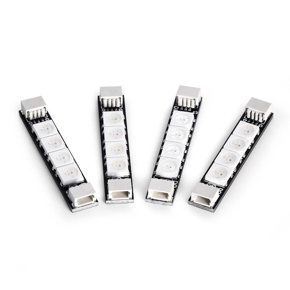 Set mit 4 LED-Streifen zur Montage an den Auslegern der Drohne. Die LED-Streifen sind programmierbar, und jede LED kann individuell über den Flight Controller der Drohne konfiguriert werden. Die Streifen sind mit einem Steckverbinder ausgestattet, der eine einfache Installation ohne Löten ermöglicht. Für Liebhaber des Lötens stehen zudem Lötpads zur Verfügung. Jeder Streifen wird mit 5V betrieben und enthält 4 LEDs der Größe 5050.