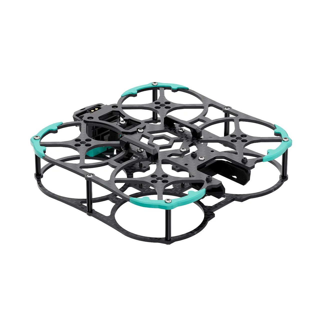 Sub250 Huma20 ist ein kompakter 2"-Cinewhoop-Rahmen, der vollständig aus 2 mm starkem Carbon gefertigt ist und somit leicht und gleichzeitig äußerst robust ist. Die FPV-Kamera ist in einer 3D-gedruckten Halterung montiert, die über Gummidämpfer mit dem Rahmen verbunden ist, um Vibrationen zu minimieren. Der Rahmen unterstützt sowohl analoge als auch digitale Videosysteme. Für die Verwendung mit der DJI O4 Pro-Einheit ist ein alternatives 3D-Druckset erforderlich. Er ist für AIO-Flightcontroller mit einem 25,5×25,5 mm Lochraster ausgelegt. Für die VTX-Montage stehen Bohrungen mit 20×20 mm und 25,5×25,5 mm zur Verfügung. Der XT30-Stecker ist im hinteren Teil fixiert, um einen einfachen Batterieanschluss zu ermöglichen. Die Motorbefestigungen haben ein 9 mm M2-Lochraster.