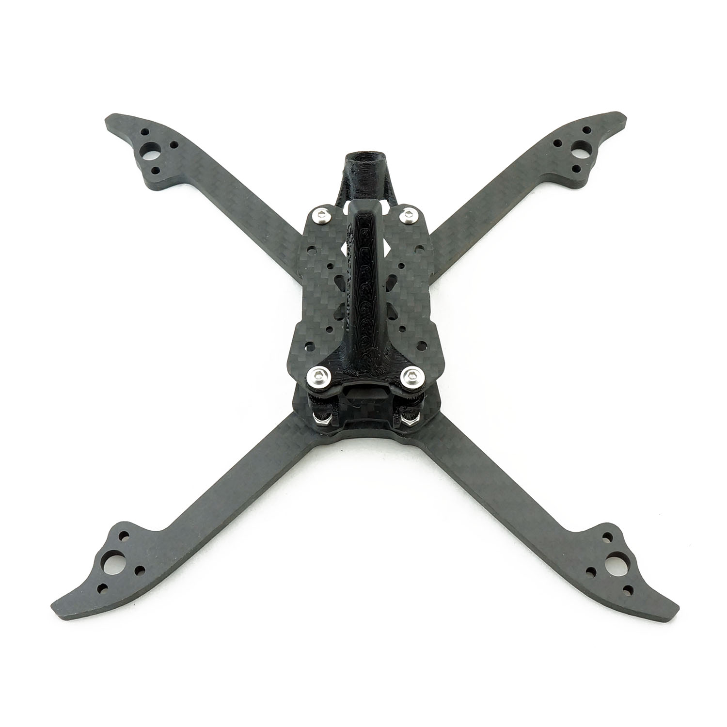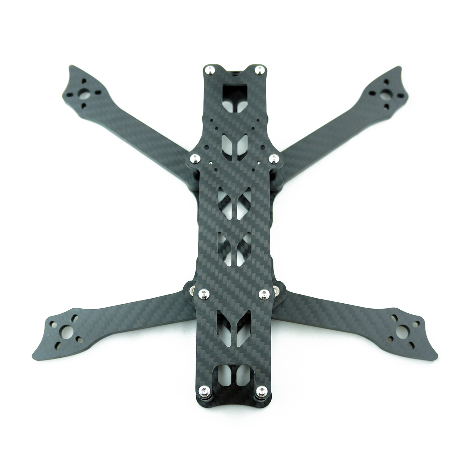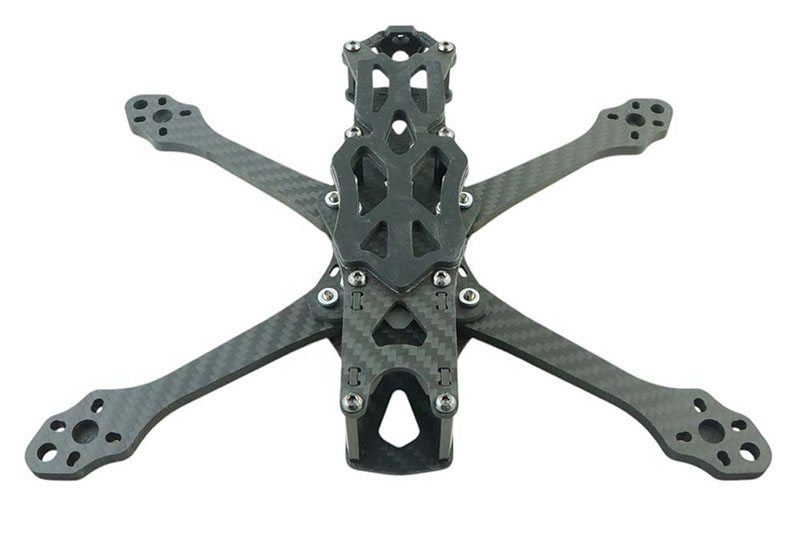 Heutzutage ist Kohlefaser (Carbon) der absolute Standard. Das Material kombiniert geringes Gewicht mit hoher Steifigkeit/Festigkeit und guter Vibrationsdämpfung. Carbon-Rahmen bestehen meist aus mehreren Platten unterschiedlicher Stärke. Die Arme werden typischerweise aus dem dicksten Carbon geschnitten, um Abstürze zu verkraften. Am Markt existiert eine Vielzahl von Formen, die sich vor allem durch die Anordnung der Arme unterscheiden. Zu den gebräuchlichsten gehören H, True-X, Wide-X, Stretched-X und Deadcat.